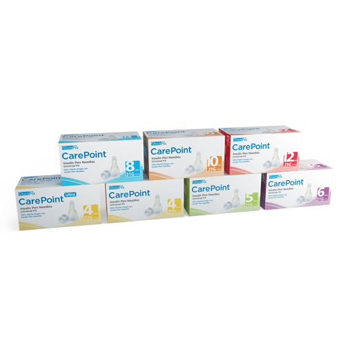 CarePoint Ultra pen needles are universally compatible with all insulin/GLP-1 pen systems, including Mounjaro and Wegovy. These sterile, single-use pen needles are supplied in packs of 100.