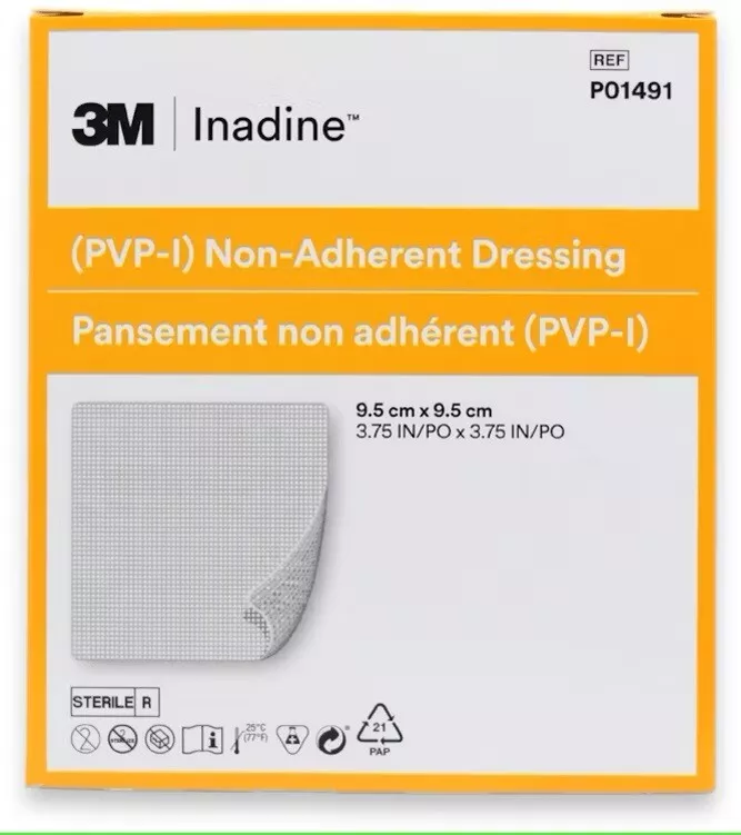 INADINE PVP-I Non-Adherent Dressing is made from a low-adherent knitted viscose fabric, which is impregnated with a polyethylene glycol (PEG) base containing 10% Povidone Iodine, equivalent to 1.0% available iodine.