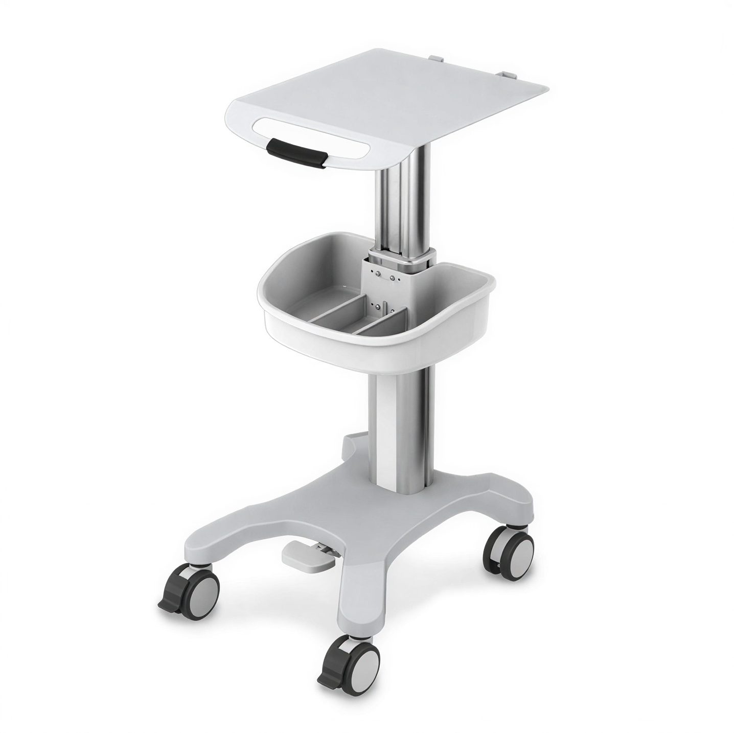 - Braked and swivel castors enhance stability and safety during transport