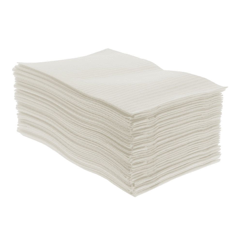 UnoDent 3-ply disposable dental bibs in white for patient protection. Designed to absorb fluids and protect clothing while supporting infection prevention and control.