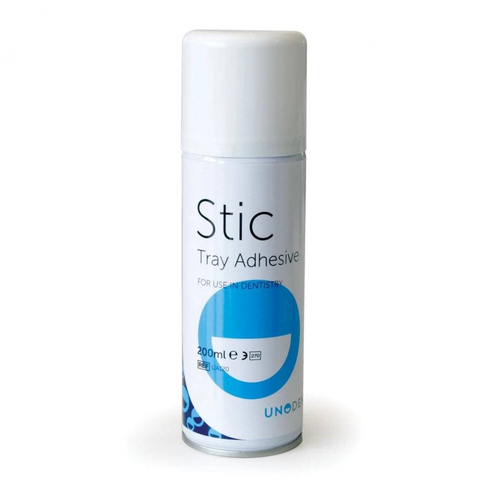 CFC free aerosol tray adhesive spray for securing alginate impression material to impression trays.